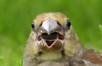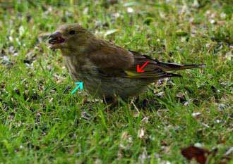 sol sur l'aire réservée aux verdiers évitant systématiquement mangeoires,
