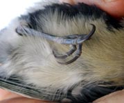 5. Par contre, chez cette mésange charbonnière baguée au